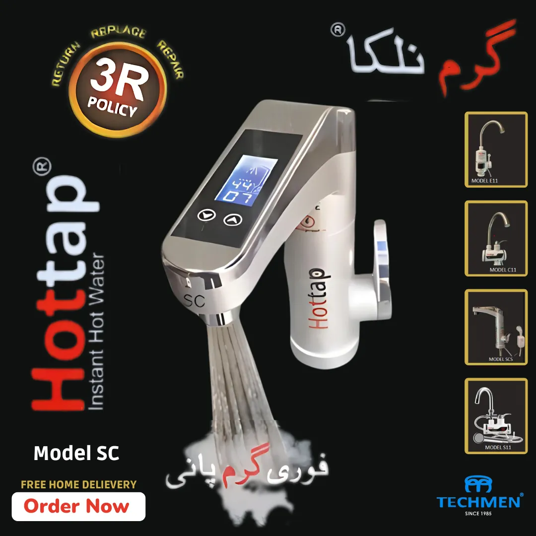 The Hottap Model SC Digital is an instant hot water tap manufactured in Pakistan by Techmen. It’s designed to provide quick and convenient hot water on demand, making it suitable for various household tasks like washing dishes, vegetables, or even bathing.